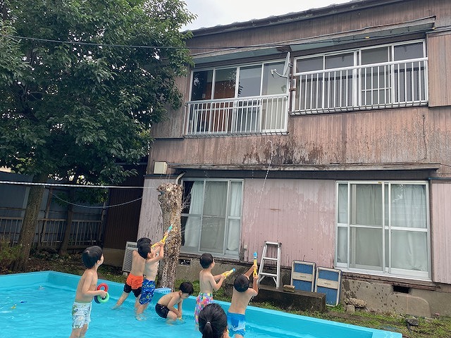 新しい保育室を建築するため、長い間活躍してくれたプールとは今日でお別れです。牧師館「ルツの家」とプールの場所に、来年の春には、素敵な保育室と広いデッキのある中庭ができる予定です。
